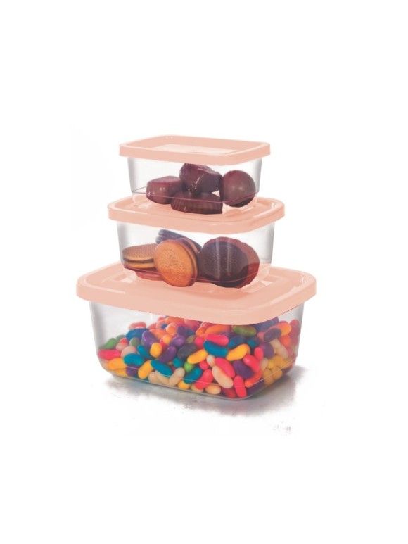 Kit 3 Potes De Plástico Retangular C/ Tampa Retangular - 260ml / M - 520ml / G - 1300ml